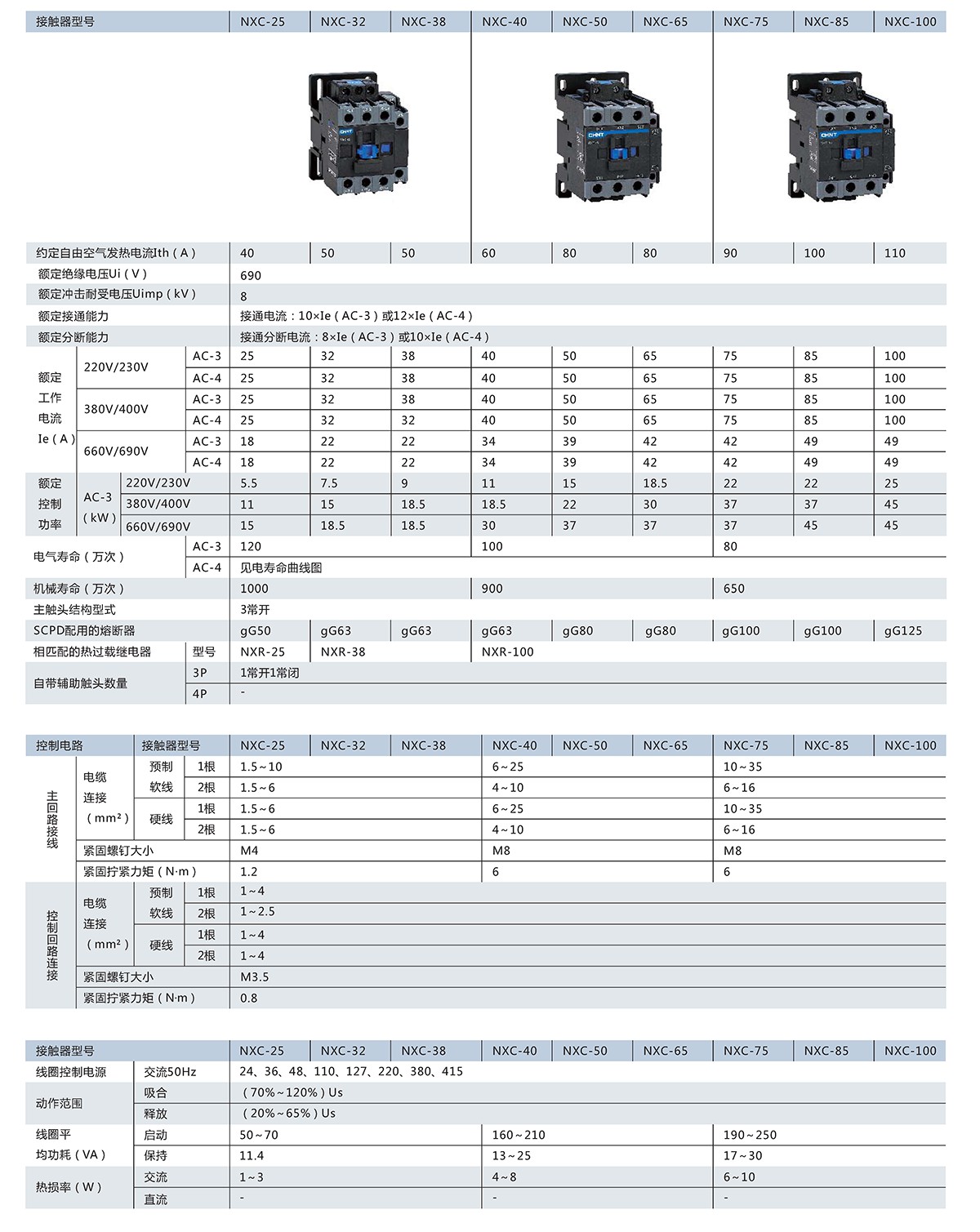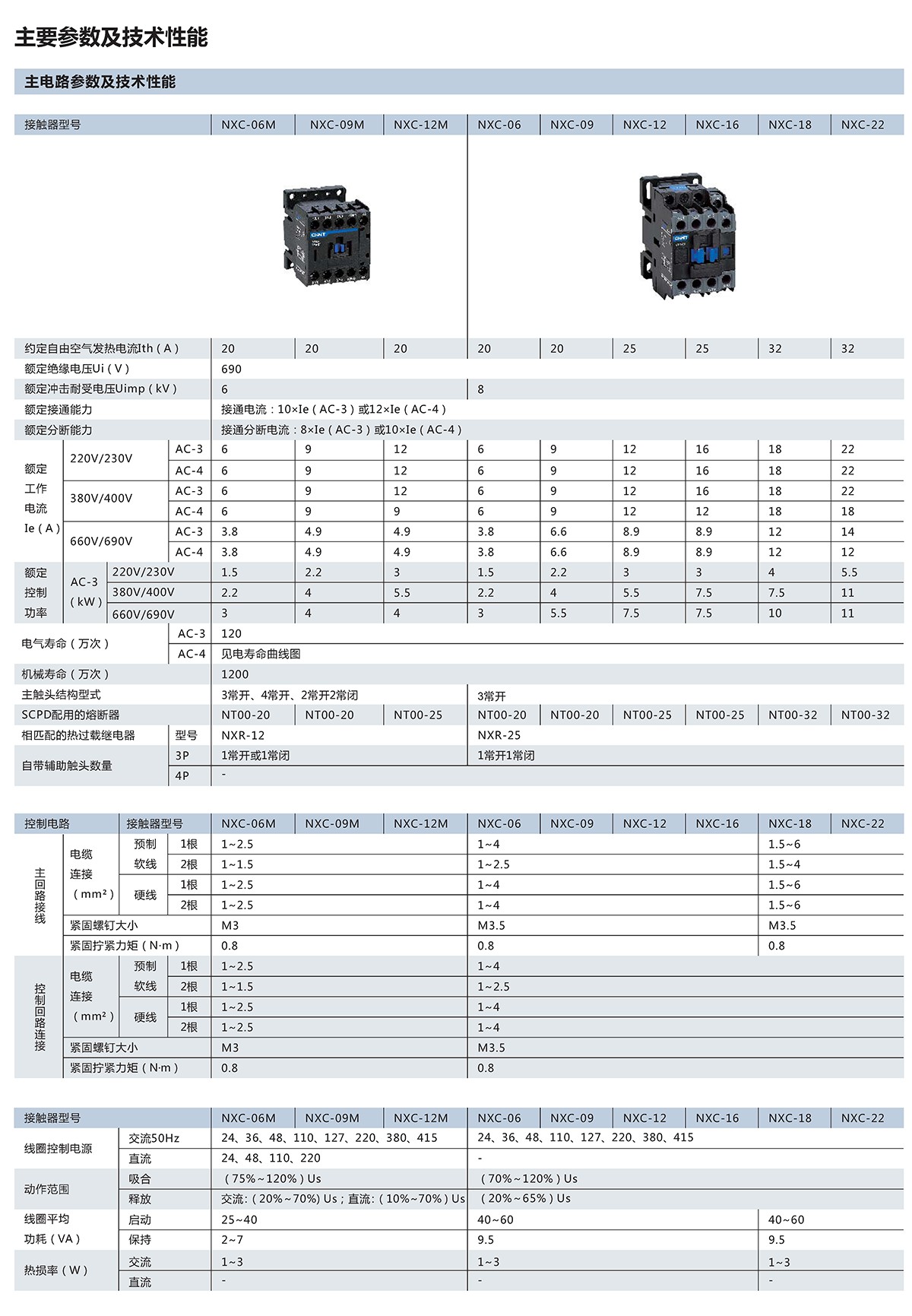 全新的NXC系列交流接觸器,外觀新穎,結(jié)構(gòu)緊湊。主要用于頻繁地起動和控制交流電動機,遠距離接通和分?jǐn)嚯娐?,并可與適當(dāng)?shù)臒徇^載繼電器組成電磁起動器。