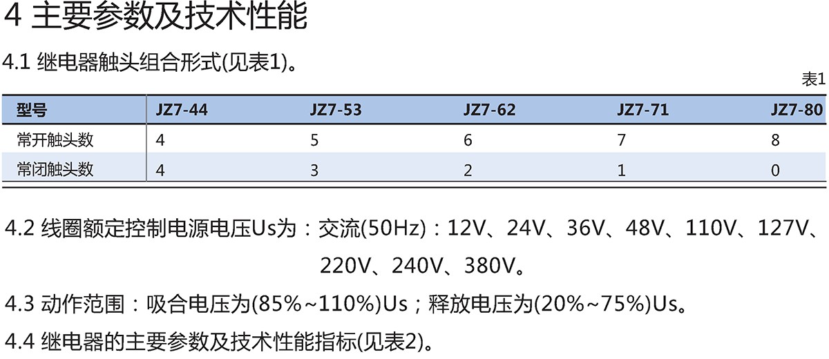 JZ7系列中間繼電器主要用于交流50Hz(派生后可用于60Hz)、 額定工作電壓至380V或直流額定電壓至220V的控制電路中,用來控制各種電磁線圈,以使信號擴(kuò)大或?qū)⑿盘柾瑫r(shí)傳給有關(guān)控制元件。